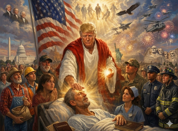 वह आए दिन सोशल मीडिया पर कुछ ऐसा पोस्ट करते हैं, जिससे लगे कि ईसा मसीह इस युद्ध में उनकी मदद कर रहे हैं। पिछले दिनों उन्होंने अपने एक सोशल मीडिया में ए.आई.जनरेटेड एक फोटो पोस्ट की और कहा कि ईसा मसीह उनके साथ हैं। इस पोस्ट से ईसाई जगत में भी नाराजगी फैल गई। इस पोस्ट या फोटो में ट्रंप ने खुद को देवदूत दिखाया है। वह यह बताना चाहते हैं कि वह युद्ध लड़कर कोई ईश्वरीय कार्य कर रहे हैं।